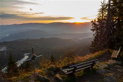 Was die einstige Almweide des Mittagsplatzls so besonders macht, erschließt sich dem Wanderer aber erst auf den zweiten Blick. Folgt man nämlich dem Weg vom Plateau zur Felsenkante, offenbart sich eine einzigartige Aussicht auf den Großen Arbersee, in den Böhmerwald und zum Großen Falkenstein im Nationalpark Bayerischer Wald.