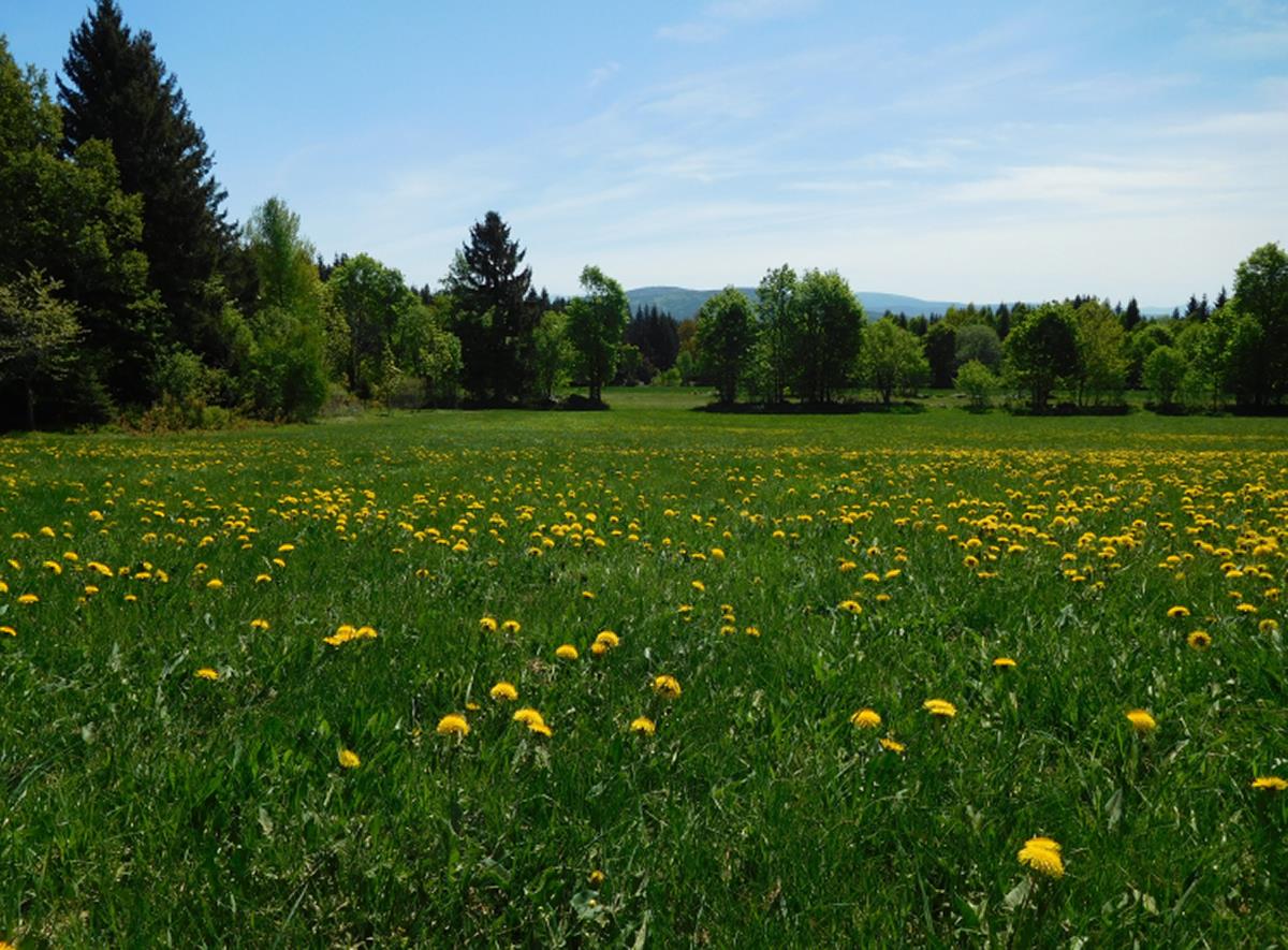 There are loose transitional areas between the individual types of meadows and it is rare to find them in crystal structure. Individual grass plots commonly create mosaics, in which individual types of meadows are either separated or smoothly transition into one another depending on the depth of the soil, wetness, nutrients, or geographical orientation. Fertilized, nutrient-rich and nutrient-poor meadows can be easily distinguished by colour. Fertilized meadows are darker green and in spring are full of yellow dandelions. Nutrient-poor meadows are noticeably lighter.