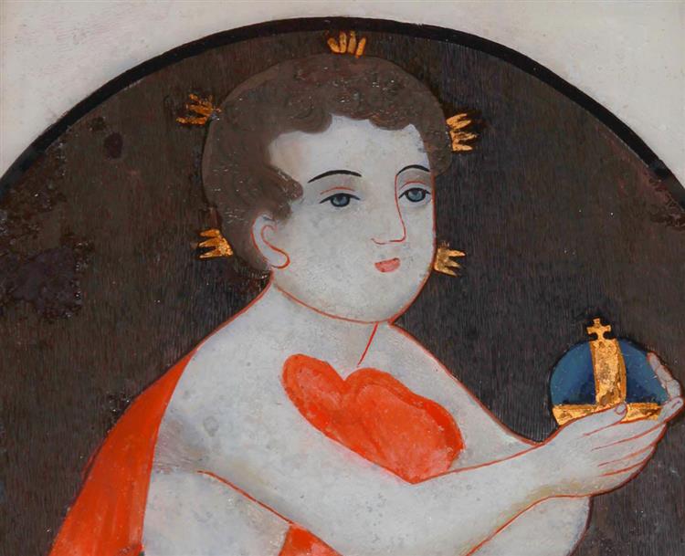 Bilder mit der Heiligendarstellung, welche mithilfe der Hinterglasmalerei entstanden sind, war es möglich an der Wand in jedem (nicht nur) Böhmerwalder Bauerhof zu erblicken. Gerade der Böhmerwald und das Riesengebirge gehörten zu den Regionen der Tschechischen Länder, wo diese Art am verbreitetsten war und zwar schon seit der zweiten Hälfte des 16. Jahrhunderts. Die älteste tschechische Erwähnung vom Glasbläser Václav z Klatov geht bis zum Jahre 1390 zurück. Dei Glasmalereitechnik ist aber selbstverständlich viel älter – ihre Wurzeln gehen bis in die Antike zurück und im Laufe des Mittelalters wurde sie vor allem in den Venediger Glasbläsereien verbessert. Mehrere Faktoren trugen zur Hinterglasmalereientwicklung im Böhmerwald bei – erstens die einfache Zugänglichkeit zu billigem Tafelglas, das man direkt in den Böhmerwalder Glasbläsereien herstellte; zweitens die Berglebensbedingungen, wo die harten Wintern dazu führten, dass die Böhmerwalder Einwohner gezwungen waren, den Großteil des Jahres im Haus zu verbringen und so war die Hinterglasmalerei eine optimale Zuverdienstmöglichkeit; die Tatsache, dass das Glasschmücken eine technisch unschwere Methode war, war der dritte Grund – die Farbe trocknet an der Luft und das Glas schützt sie vor Außeneinflüssen. Es ist also nicht mehr nötig, sie weiter zu behandeln. Der Schöpfer konnte die Schablonen, nach welchen die Hinterglasmalereikonturen gezeichnet waren, entweder selbst malen oder sie waren das Werk von professionellen Malern. Es bedarf für die Herstellung von Hinterglasmalerei wenigstens ein bisschen Gewandtheit. Die künstlerische Begabung war nicht immer nötig. In den Glasbläserfamilien, die in den Glashüttenwerken arbeiteten, erbte man diesen Beruf üblich. Die Kinder lernten die Hinterglasmalereitechnik bereits in frühem Alter. Es war möglich die Hinterglasmalereien sogar auf leicht fehlerhaften Glastafeln zu malen. Man benutzte zur Hinterglasmalerei Öl- und Temperafarben. Die Tafel wurde erst mit Seifenwasser oder mit Terpentin abgewaschen, um die oberflächlichen Unreinheiten und Fett zu entfernen. Diese hätten die Farbglashaftung verhindern können. Nachdem diese trocken wurden, legte man die Schablonen auf sie. Der Maler zeichnete erst von der Schablone mithilfe eines kleinen Pinsels die Konturen des zukünftigen Werkes nach. Diese speziellen Pinselchen stellte man meistens aus Eichhörnchen- oder Maderfell her. Das Hinterglasmalereiverfahren wird genau umgekehrt als bei der herkömmlichen Malerei ausgeübt – man geht von dem vorderen Plan zum Hinteren, von den Details zu größeren Flächen. Der Maler malt auf das Glas direkt das, was „oben“ sein wird. Die Details wie Schatten, Röte, Augen, Nägel Draperieschatten und –Details und Textilmuster kommen nach der Reihe, nämlich erst nach den Konturen. Als letztes malte man größere farbige Flächen und den Hintergrund. Was die Distribution von heiligen Bildern betrifft, wurde ein deutlicher Teil ins Ausland exportiert, vor allem in die anderen Teile der Habsburger Monarchie oder nach Deutschland. Ein Teil wurde ebenfalls an den Jahresmärkten oder Festen verkauft und der Rest verkauften die Hausierhändler, s. g. „Häusermänner“ oder „Kraxenmänner“ je nach der Größe des Gepäcks in welchem sie die Bilder transportierten. Hinterglasmalereimotive, die am häufigsten vorkamen, waren natürlich die Heiligen, besonders beliebt waren die Bilder der Jungfrau Maria (ob als Madonna oder Pietät), Jesus Christus, Abendmahl Jesu, Heiliger Geist, Heiliger Václav und hiesige Patronen oder Patronen der Familienmitglieder. Ein Bild, das einen Heiligen darstellte war damals für die Volksschichten wichtiger, als wir uns das heute vorstellen können – es war ein symbolischer Vermittler zwischen der irdischen und himmlischen Sphäre; zwischen dem betenden Menschen und dem Heiligen, welcher für ihn eine Fürbitte einlegen sollte. Die heiligen Bilder hing man immer an einen besonderen Platz im Raum auf – entweder an die Spitze des Esstisches oder in die s. g. Heilige Ecke (Ecke im Raum, üblicherweise gegenüber vom Ofen). Leute, die im Haus wohnten, beteten hier ob einzeln oder zusammen, bei üblichen und auch feierlichen Gelegenheiten, im Fall einer ernsten Krankheit in der Familie führte hier der Priester die Gebete für die Sterbenden aus oder er bereitete sich für die letzte Salbung vor.