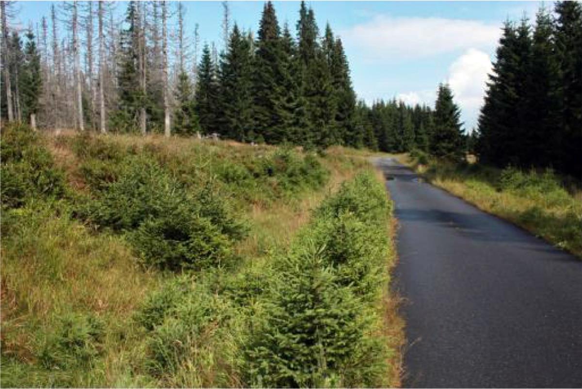 Entlang des Alten Bøeznická Weges erhielten sich mehrere Terrain-Stücke, wo man die Goldwegreste sehen kann. Es handelt sich um einen Basishohlweg, der sich stellenweise spaltet. Er nähert und entfernt sich von der heutigen Route, doch er ist immerhin in seiner Nähe. Die Spuren des alten Weges kann man aber weiter im Westen beim heutigen Weg in der Steigung bei den Abhängen des Modravská-Bergs (1157 M) beobachten. An den nachfolgenden langen und weitreichenden Berggefilden, die vom Torfmoor und niedrigem Bewuchs bedeckt sind und von woher es eine schöne Aussicht auf die zwei Gipfel des nicht-weit liegenden Berges Roklan und Luzný gibt, haben sich keine Wegereste erhalten. Diese kommen erst bei Cikánská sla vor. Von dort führt ein gut sichtbarer Hohlweg, der sich westlich von der heutigen Straße ununterbrochen zum Platz „Am TrampuKreuzchen“ durchzieht.