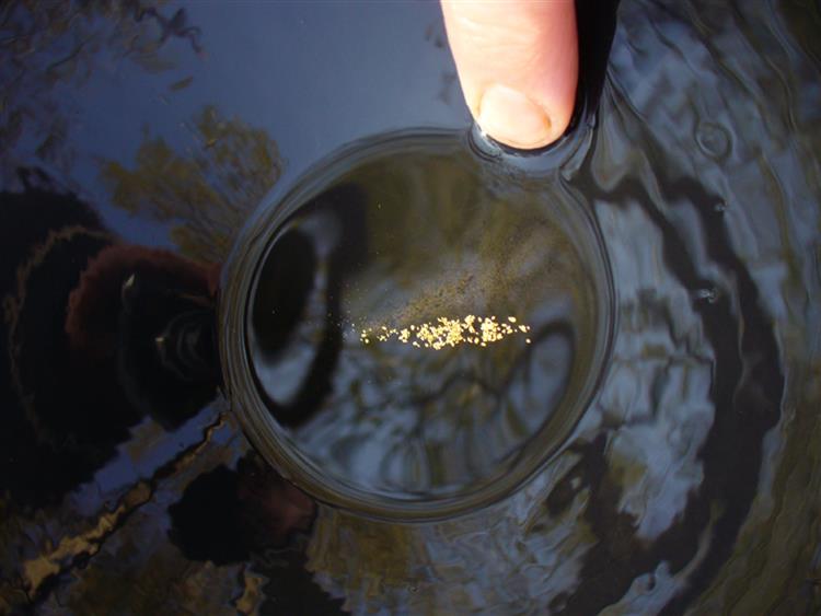 Das Goldwaschen nutzt einfache physikalische Gesetzmäßigkeiten der Gravitation aus. Das Gold ist sehr schwieriges Element, welches bei Sedimentation des aufgewirbelten Sandes im Wasser am schnellsten zum Boden sinkt. Es ist ein Element, welches natürlich in Felsgesteinen hauptsächlich als reines Metall vorkommt. Hierher kam das Gold bei Entstehung dieser Felsgesteine wahrscheinlich durch Fällung aus heißen gesättigten Lösungen, welche durch Risse im Umgebungsfelsgestein strömten. Wenn das Felsgestein auskühlte, kristallisierten fortlaufend verschiedenste Minerale einschließlich des Goldes. Das Gold kommt oft entlang der Kieselsteinadern vor, jedoch davon gibt es nur sehr kleine Menge. Wenn das Zerfallen des Felsgesteines unter dem Einfluss der Erosionsvorgänge beginnt, so wird das Gold aus Klemmung der Felsgesteinmasse frei. Falls das Witterungsprodukt in das strömende Wasser kommt, wird es ständig durch Steine und Kiessand gebrochen, sodass sich fortlaufend weitere Goldelemente freisetzen. Diese werden dann mit dem Strom weggetragen und häufen sich auf bestimmten Orten des Flusses an. Kleine Goldschüppchen, Goldflitterchen, sind die kleinsten Goldelemente. Für 1g Gold sind ca. 15 000 Goldflitterchen erforderlich. Größere Goldstücke sind Plättchen und die größten Nuggets – Findlinge.