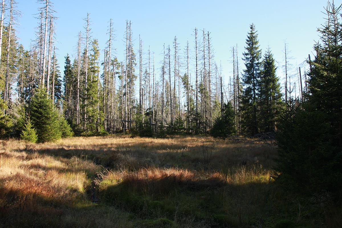 The bird stream springs up on the western slope of Black mountain in 1220 meters above sea level. It flows through Bishops’ moor all the way to the former Bird Reservoir. There it connects with the Mokrůvka stream, which springs up on the northern slope between Malá Mokrůvka (1330 m) and Mrtvý vrch (1254 m). It then continues in a northwestern direction to the confluence with Modrava stream, which is the crenon of the Vydra river. The bird stream became known for a blockade with which eco activists fought against the cutting down of bark beetle infested trees. According to the organisers, the administration of the NP Šumava did not have the necessary granted exception to this action.