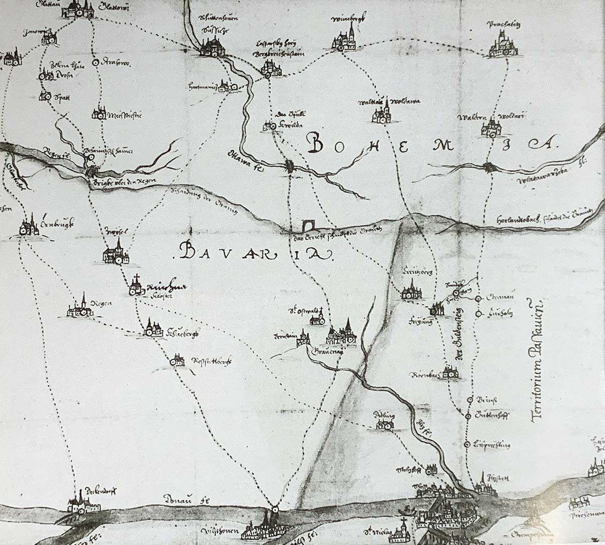 Since the 2nd half of the 14th century, the commodities transported on the Golden Road were similar to the ones transporten on the neighbouring Golden Trail – to Bohemia from the south, through Passau it was salt and luxury items from the south (spices, wine, fabrics, weapons, etc.), in the other direction mainly corn and other foodstuffs (malt, hop, cheese, fat, tallow), but also barrels of salted herring from Baltic cities. Tariffs meant profits for the Bavarian duke, but also for villages on the road. Just like other trade routes back then did, it attracted thieves; for example in 1402, a Prague merchant was robbed on the Golden Road.
