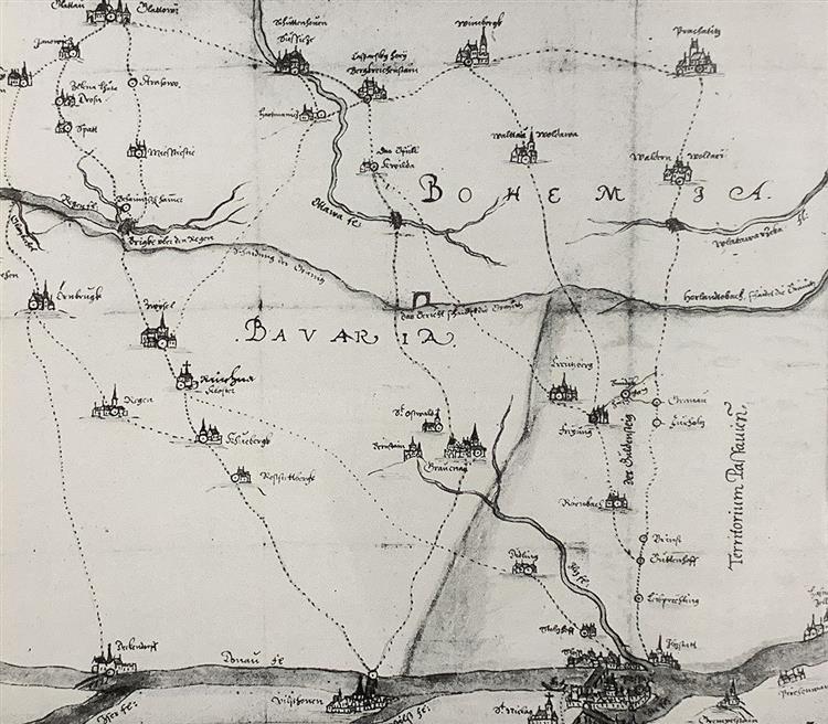 Other trails crossing the Šumava forests were the Nýrsko Trail, leading from Cham through Nýrsko to Klatovy, in the west and in the east the Hornoplánská (High-plain) Road, which began in Waldkirchen and had two variants: through Nová Pec or through Zvonková, the Dolní Vltavice Trail from Aigen through Dolní Vltavice and Kájov to Český Krumlov, Frymburk Trail from Haslach thorugh St Thomas and Frymburk to Český Krumlov and the Vyšší Brod Trail from Bad Leonfelden through Vyšší Brod to Český Krumlov.